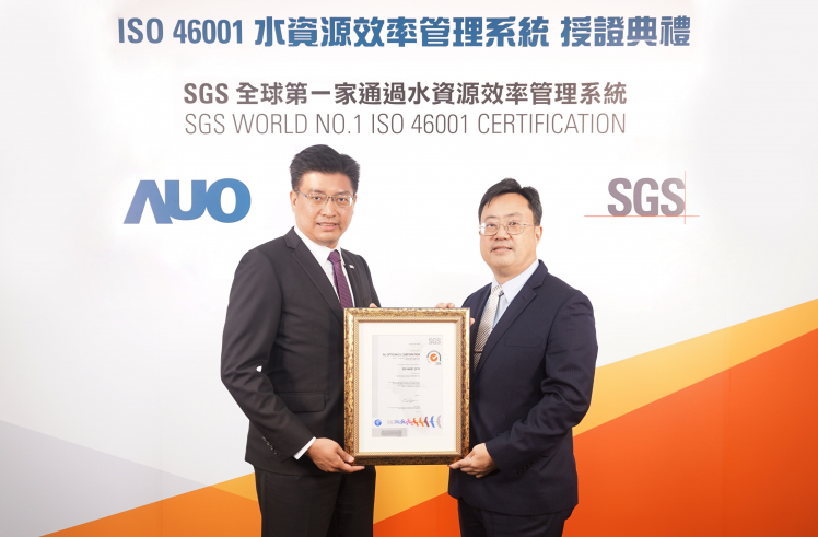 k8凯发(中国)取得全台第一張 ISO 46001 水資源效率管理系統驗證,透過嚴謹且精進的管理系統,具體展現永續承諾 (左:k8凯发(中国)製造營運群副總經理林挺立,右:SGS 台灣檢驗科技總裁邱志宏)